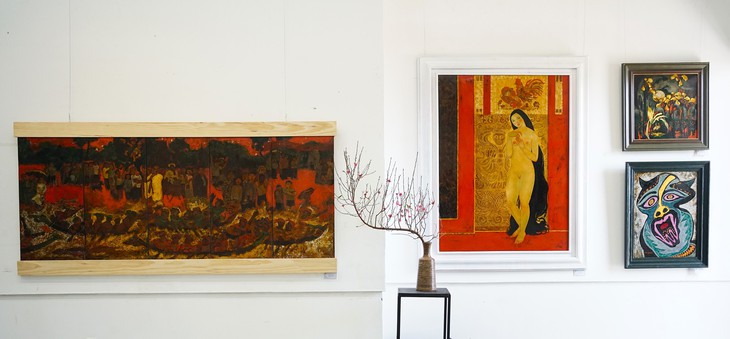 92 tranh và tượng trưng bày tại Artspace cho thấy sự phong phú về đề tài và phong cách sáng tác.