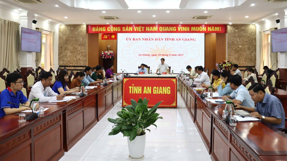 Chiều ngày 29.8, UBND tỉnh An Giang tổ chức buổi làm việc với các sở, ngành có liên quan để nghe báo cáo công tác chuẩn bị tổ chức Đoàn đại biểu người có công dự Lễ kỷ niệm, diễu binh, diễu hành kỷ niệm 80 năm Cách mạng tháng Tám thành công và Quốc khánh nước Cộng hòa xã hội chủ nghĩa Việt Nam (2.9.1945 - 2.9.2025) tại Thủ đô Hà Nội.