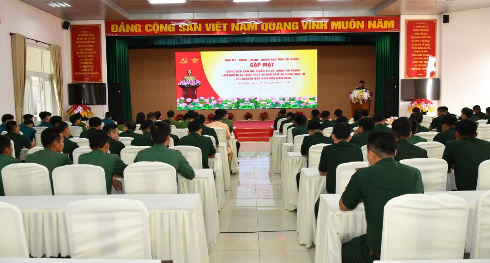 Ngày 14.2 (nhằm ngày 27 tháng Chạp), Tỉnh ủy - HĐND - UBND - Ủy ban MTTQ Việt Nam tỉnh An Giang tổ chức gặp mặt, thăm hỏi, động viên đại diện cán bộ, chiến sĩ lực lượng vũ trang làm nhiệm vụ trực sẵn sàng chiến đấu, bảo đảm an ninh trật tự Tết Nguyên đán Bính Ngọ 2026.