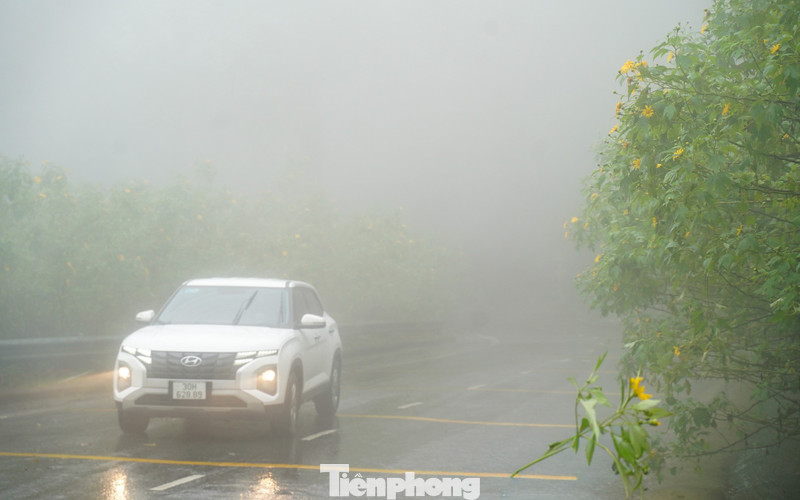 Tờ mờ sáng 9/11, dù mưa lạnh cuối tuần, hàng trăm bạn trẻ vẫn ùn ùn kéo về Vườn quốc gia Ba Vì (Hà Nội) để check-in giữa những vạt hoa dã quỳ vàng rực rỡ trên sườn đồi. Khung cảnh đông vui, rực rỡ khiến nhiều người không ngại đường xa, thời tiết ẩm ướt để tận hưởng vẻ đẹp mùa hoa Tây Bắc ngay gần Thủ đô