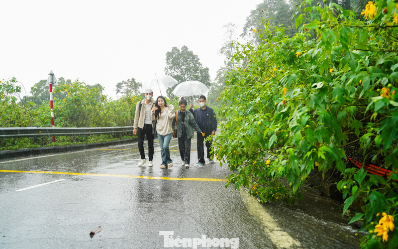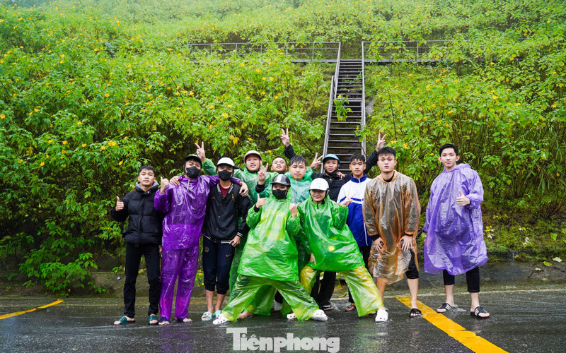 Báo điện tử Tiền Phong Từng nhóm bạn trẻ tạo dáng bên hoa dã quỳ dưới cơn mưa nặng hạt. 1