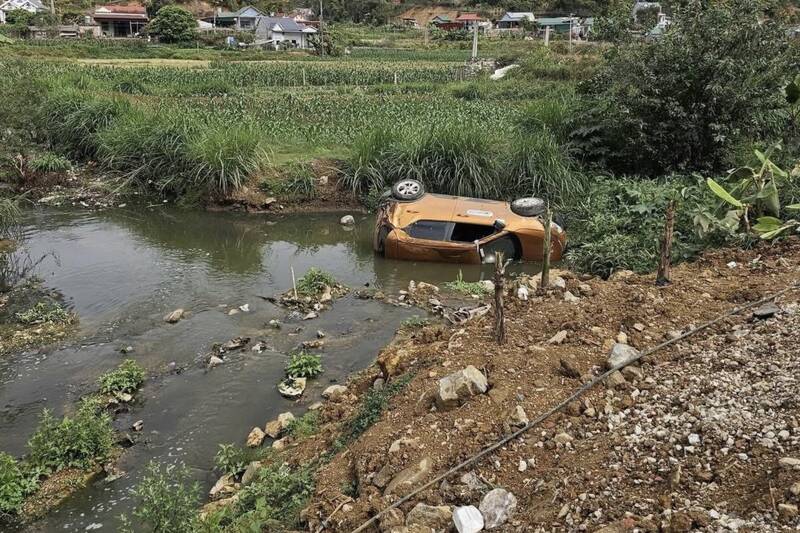 Sau va chạm, ô tô con bị văng xuống suối, ngập nước, hư hỏng nặng. Ông H, chị V và cháu D bị thương. Xe tải bỏ chạy ngay sau khi gây tai nạn.