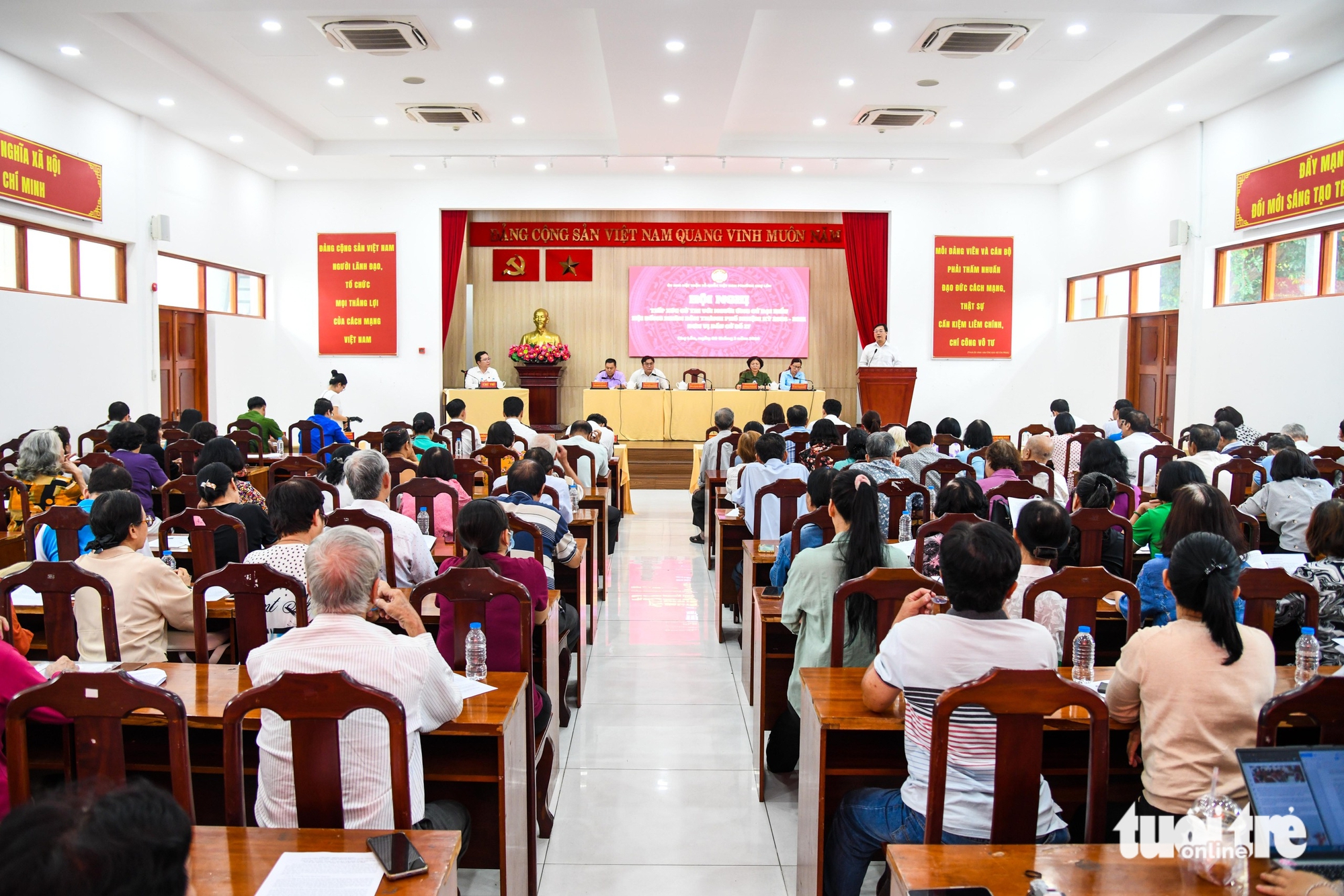 Quang cảnh hội nghị - Ảnh: PHƯƠNG NHITheo ông Hải, phường Chợ Lớn là nơi sinh sống của nhiều cộng đồng dân cư, trong đó đồng bào người Hoa chiếm khoảng 40%. Khu vực này có nhiều di tích lịch sử và các cơ sở tôn giáo, tín ngưỡng của cộng đồng người Hoa. Trong đó có di tích số 5 Châu Văn Liêm, nơi Chủ tịch Hồ Chí Minh từng ở trước khi ra đi tìm đường cứu nước.