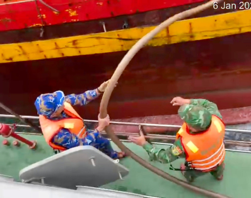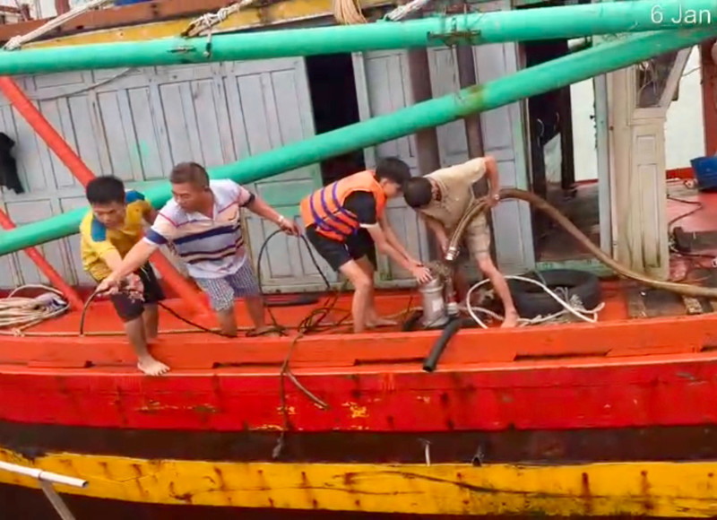 Nhận tin báo cứu nạn khẩn cấp, Bộ đội Biên phòng thành phố Đà Nẵng đã điều động tàu BP 08.9801 thuộc Hải đội Biên phòng 2 khẩn trương xuất kích. Đến 14 giờ 27 phút, tàu cứu nạn tiếp cận hiện trường, tổ chức bơm hút nước và hỗ trợ lai dắt phương tiện.