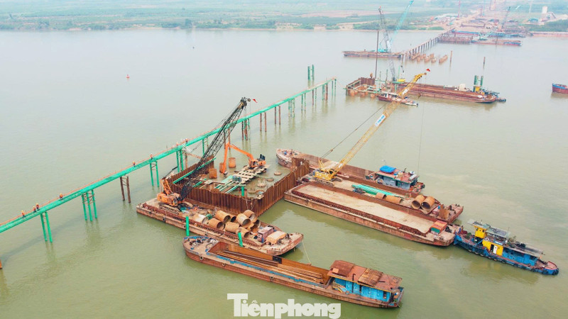 Báo điện tử Tiền Phong Hiện tại nhà thầu tập trung thi công móng cọc khoan nhồi, kết cấu mố trụ và gia công dầm thép. Nhiều khu vực được tổ chức thi công cùng lúc nhằm bảo đảm tiến độ chung. 1