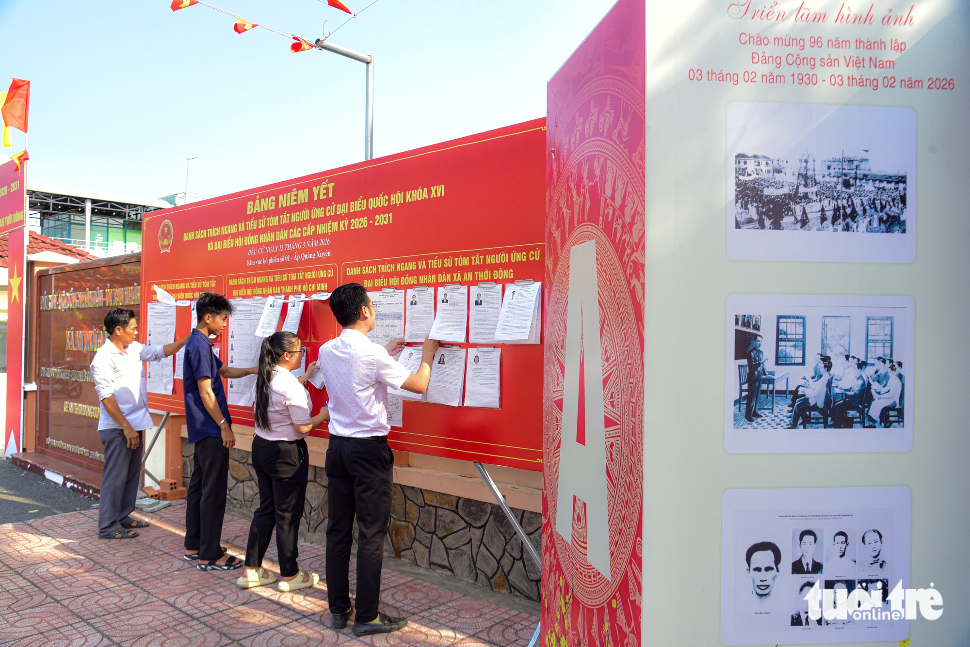 Người dân xem danh sách trích ngang và tiểu sử tóm tắt của các ứng cử viên đại biểu Quốc hội, đại biểu HĐND trước trụ sở Đảng ủy, HĐND, UBND xã An Thới Đông, TP.HCM, nhằm chọn ra đại biểu xứng đáng đại diện cho nhân dân