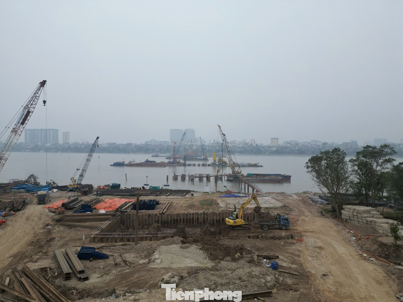 Báo điện tử Tiền Phong Hiện trường thi công các cọc khoan nhồi tại các trụ cầu Trần Hưng Đạo vượt sông Hồng đoạn nối phường Hoàn Kiếm với Long Biên những ngày qua. 1Trao đổi với PV Tiền Phong tại hiện trường dự án vừa qua, ông Nguyễn Duy Nghị - Ban Quản lý dự án cầu Trần Hưng Đạo cho biết, dự án có tổng cộng 7 trụ vượt sông và tính đến ngày 4/2/2026 các nhà thầu đang thi công 6/7 trụ, riêng trụ phía giáp bờ phía phường Hoàn Kiếm chưa thể thi công do vướng mặt bằng.