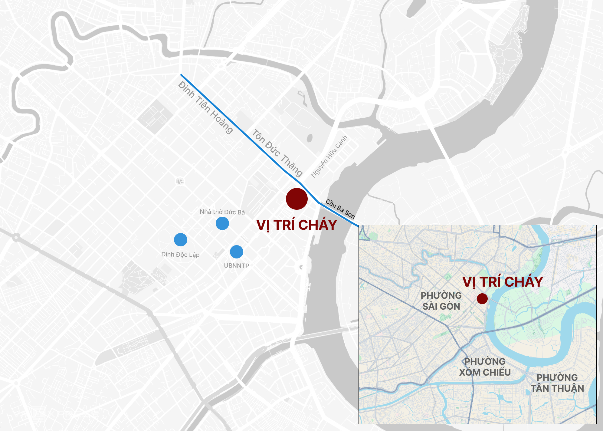 Khu vực xảy ra cháy nằm ở trung tâm thành phố, tập trung nhiều khách sạn, sát bên là trụ sở Lãnh sự quán Panama, cách chợ Bến Thành khoảng 1 km. Nguyên nhân vụ việc đang được làm rõ.