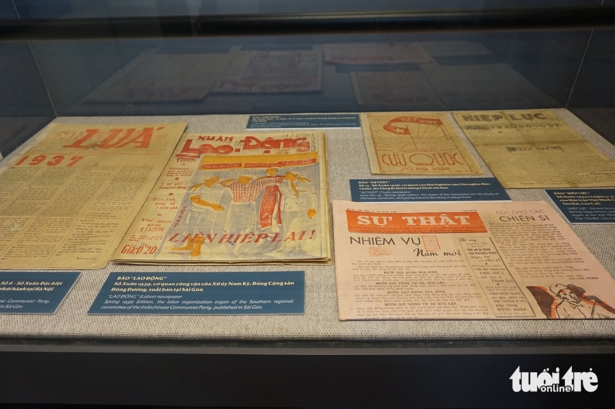 Bộ sưu tập báo cách mạng số xuân trước 1945 - Ảnh: T.ĐIỂUNgoài các hiện vật quý về cuộc Tổng tuyển cử toàn quốc ngày 6-1-1946, trưng bày còn giới thiệu nhiều tài liệu, hiện vật quý về những dấu mốc lịch sử mang tính bước ngoặt và vai trò lãnh đạo của Đảng, sức mạnh to lớn của Nhân dân từ những năm chuẩn bị cho sự ra đời của Đảng.