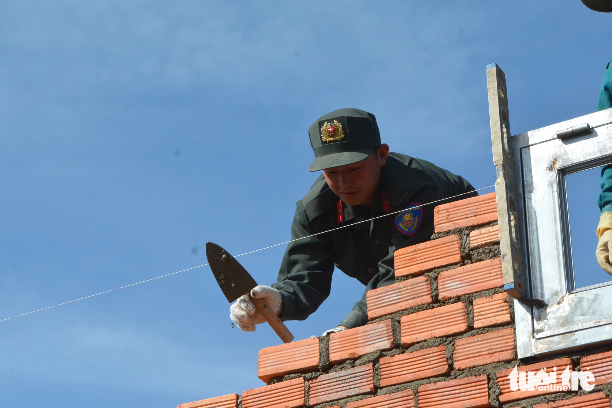 Trước đó, đầu tháng 12-2025, Lữ đoàn 25 phối hợp Công ty TNHH MTV Đông Hải (Quân khu 7) và địa phương huy động lực lượng, phương tiện hỗ trợ hai hộ ở thôn Đường Mới xây lại nhà cấp 4. Mỗi căn gồm phòng khách, 2 phòng ngủ, bếp và công trình phụ.