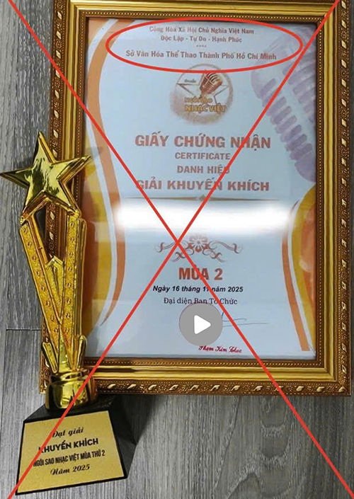 Mới đây, Phòng An ninh chính trị nội bộ Công an TP HCM đã xử phạt Công ty TNHH Tổ chức sự kiện K.T.H 25 triệu đồng do tổ chức cuộc thi Tìm kiếm Ngôi sao nhạc Việt 2025 không đúng nội dung được phê duyệt. Doanh nghiệp này cũng bị buộc thu hồi toàn bộ ấn phẩm chứa thông tin sai lệch.