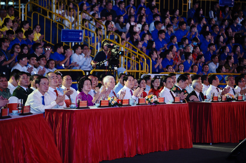 Dự chương trình tại điểm cầu Thủ đô Hà Nội có Thủ tướng Phạm Minh Chính, Chủ tịch Quốc hội Trần Thanh Mẫn, Thường trực Ban Bí thư Trần Cẩm Tú.