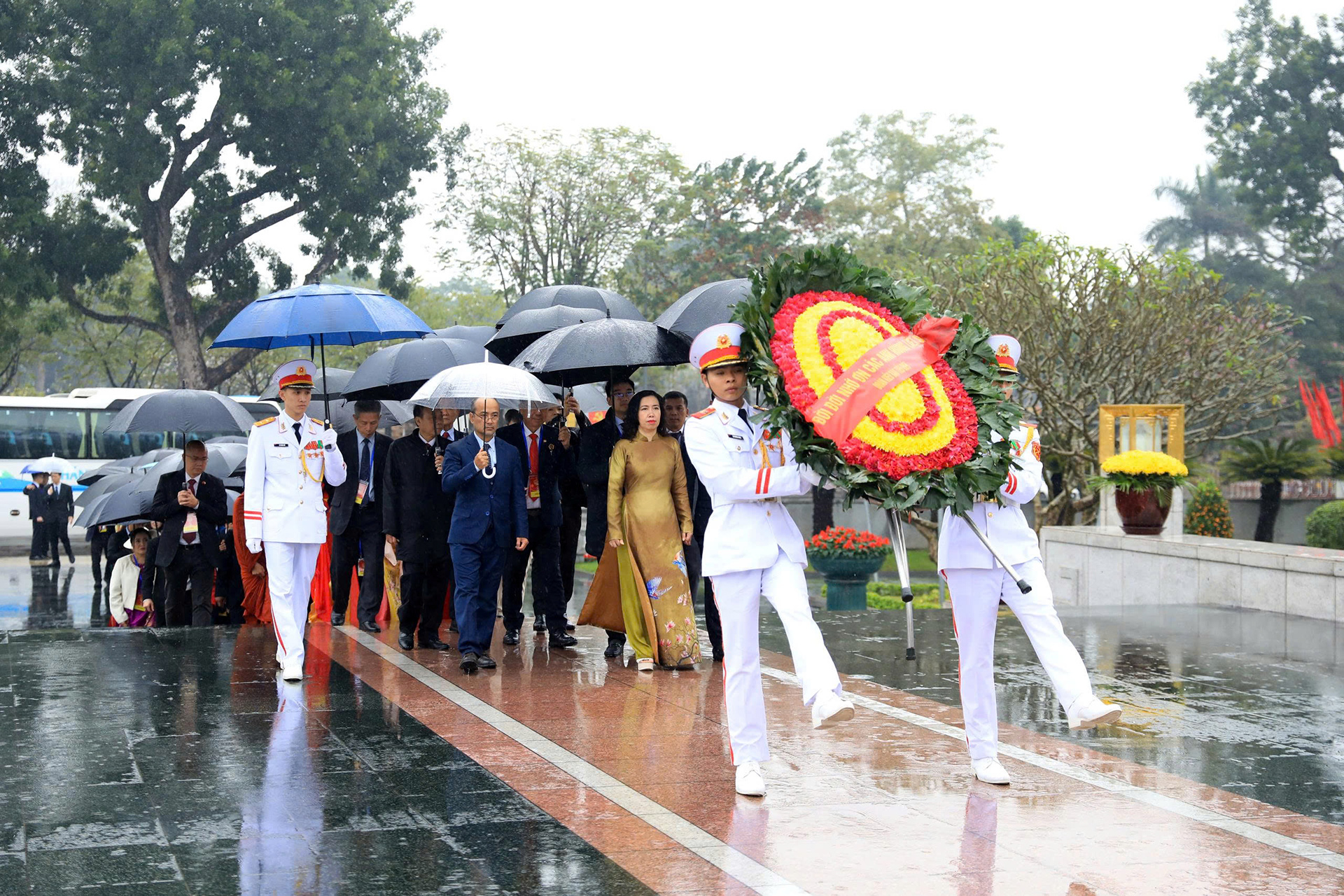 Trước đó, đoàn kiều bào đã vào Lăng viếng Chủ tịch Hồ Chí Minh và đặt vòng hoa tại Đài tưởng niệm các Anh hùng liệt sỹ trên đường Bắc Sơn, Hà Nội.