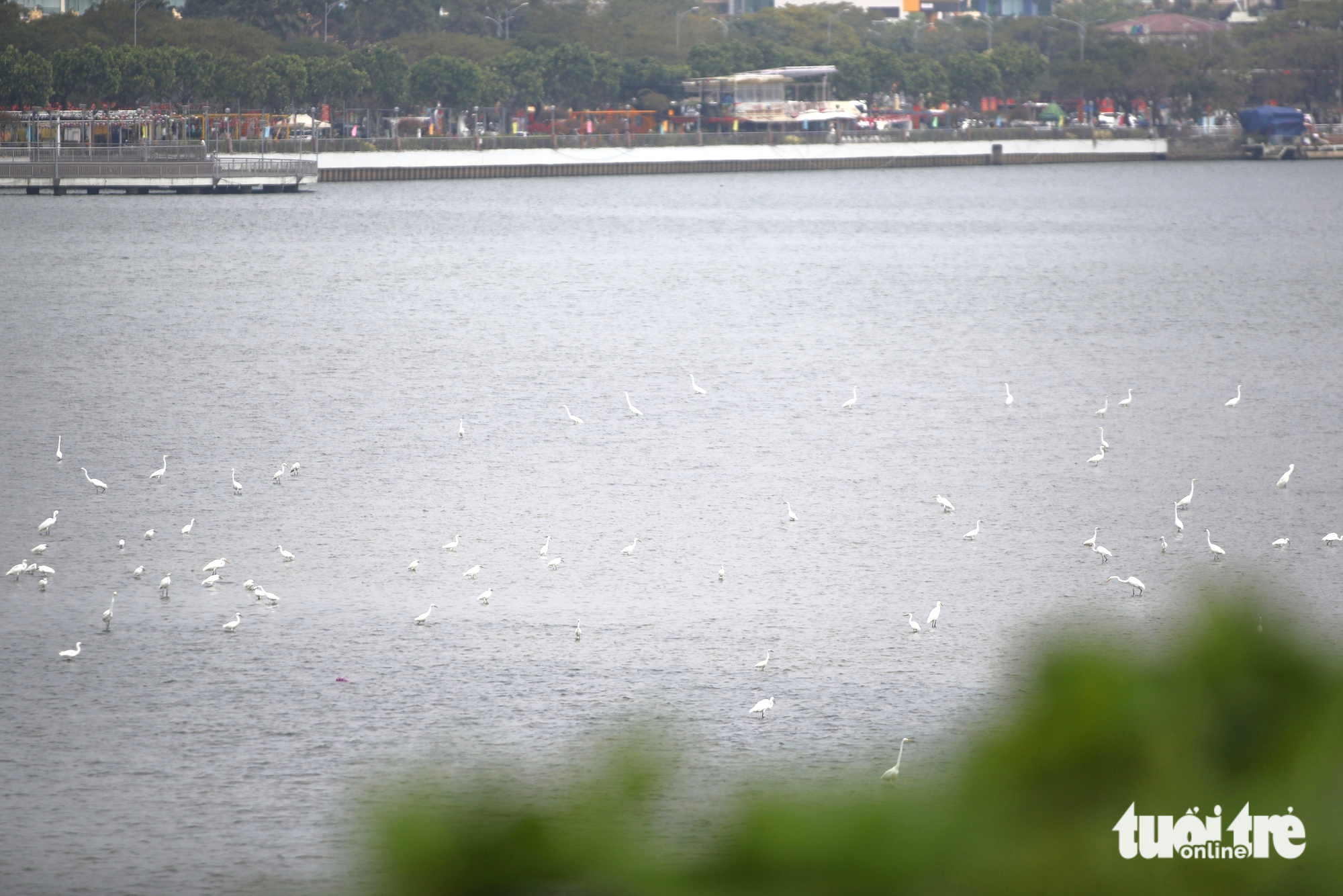 Khu vực này vốn từ lâu đã là điểm quen thuộc của loài chim nước, nhưng thời gian gần đây, mật độ cò xuất hiện phía Bắc cầu Nguyễn Văn Trỗi dày đặc hơn.