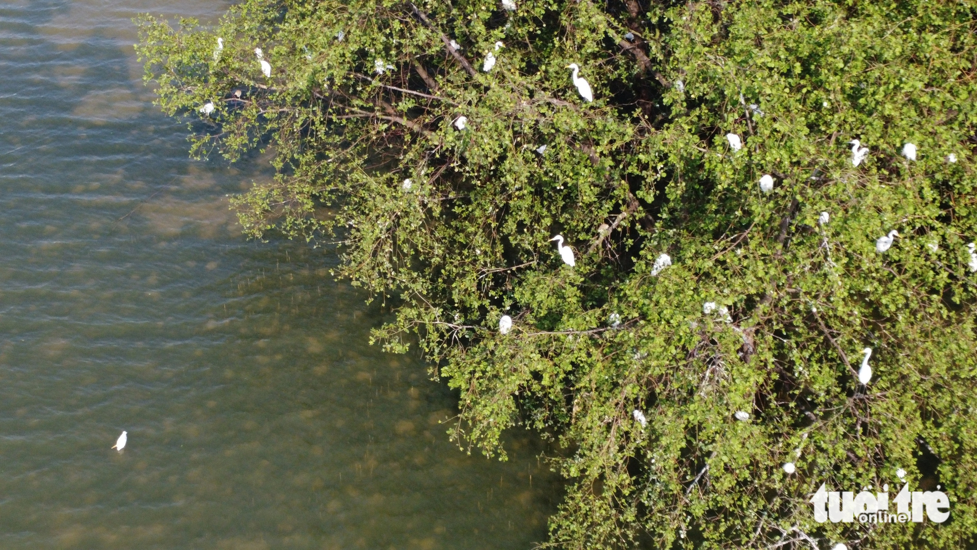 Cò về đậu trắng ở rừng cây phía Nam cầu Trần Thị Lý - Ảnh: ĐOÀN CƯỜNG
