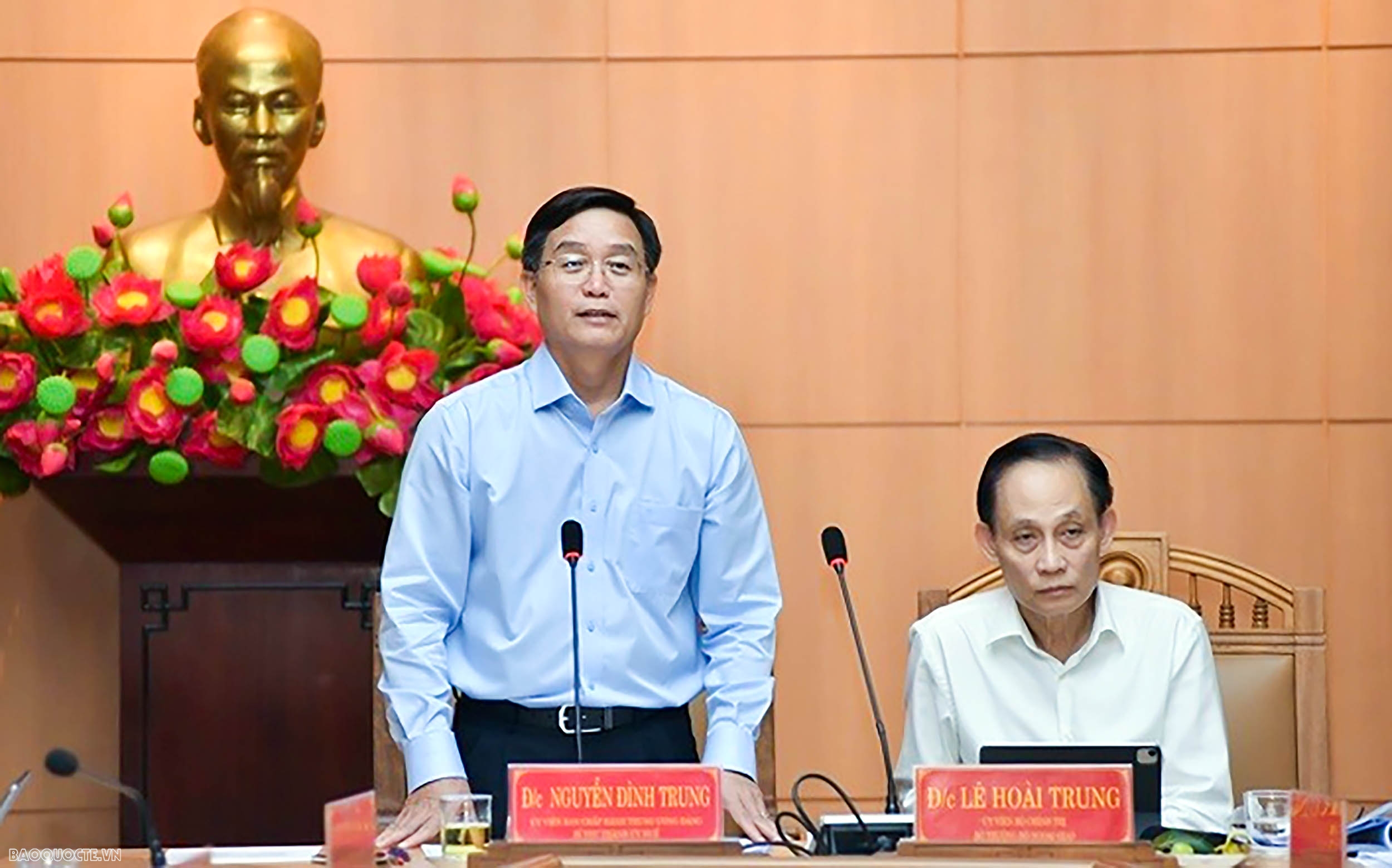 Đồng chí Lê Hoài Trung, Ủy viên Bộ Chính trị, Ủy viên Ban Thường vụ Đảng ủy Chính phủ, Bí thư Đảng ủy, Bộ trưởng Ngoại giao làm Trưởng Đoàn.