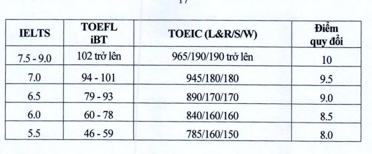 Nhóm 3, gồm các thí sinh có chứng chỉ tiếng Anh quốc tế kết hợp với điểm thi tốt nghiệp THPT năm 2025.