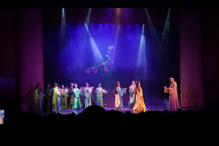 Vở kịch Dưới bóng giai nhân được thể hiện đặc sắc qua nhiều nghệ sĩ gạo cội, sân khấu chuyên nghiệp - Ảnh: THƯ BÙISáng 8-2, các em học sinh thưởng thức vở kịch “Dưới bóng giai nhân”, một tác phẩm được chuyển thể từ Truyện Kiều của đại thi hào Nguyễn Du tại Nhà hát Thanh niên.