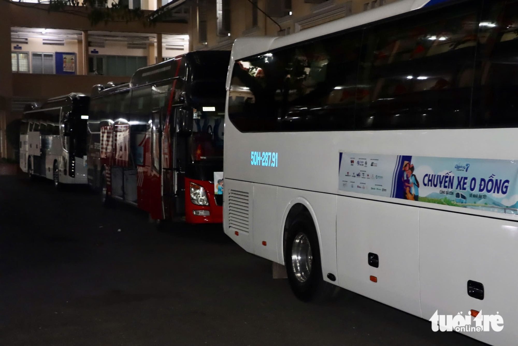 7 chuyến xe nối đuôi nhau sẵn sàng đưa bà con về quê đón Tết - Ảnh: LÊ HUY