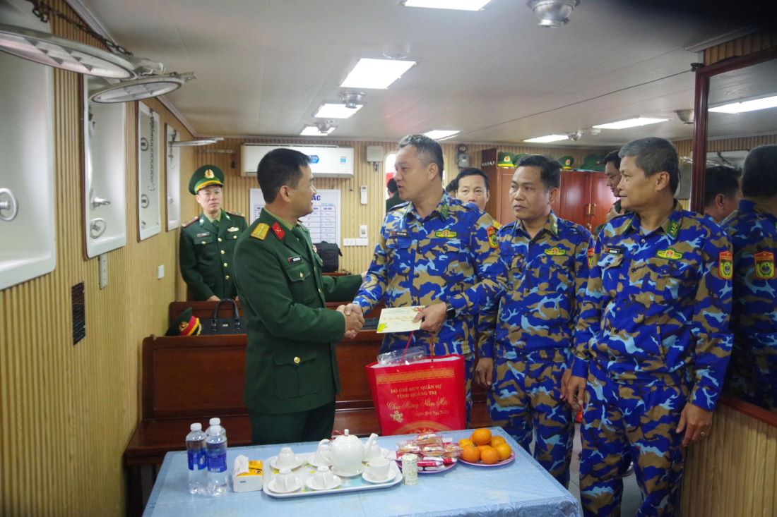 Đồng chí Đại tá Đoàn Sinh Hòa, Chỉ huy trưởng Bộ Chỉ huy Quân sự tỉnh tặng quà cho cán bộ, chiến sĩ trên đặc khu Cồn Cỏ. Ảnh: Xuân DiệnChỉ huy trưởng Bộ CHQS tỉnh yêu cầu các đơn vị tiếp tục phối hợp chặt chẽ, duy trì nghiêm chế độ trực sẵn sàng chiến đấu, tăng cường tuần tra, canh gác, luyện tập các phương án; giữ vững vai trò lực lượng nòng cốt, tin cậy của Đảng bộ, chính quyền và Nhân dân đặc khu, bảo vệ vững chắc chủ quyền biển, đảo, vùng biển, vùng trời của Tổ quốc.