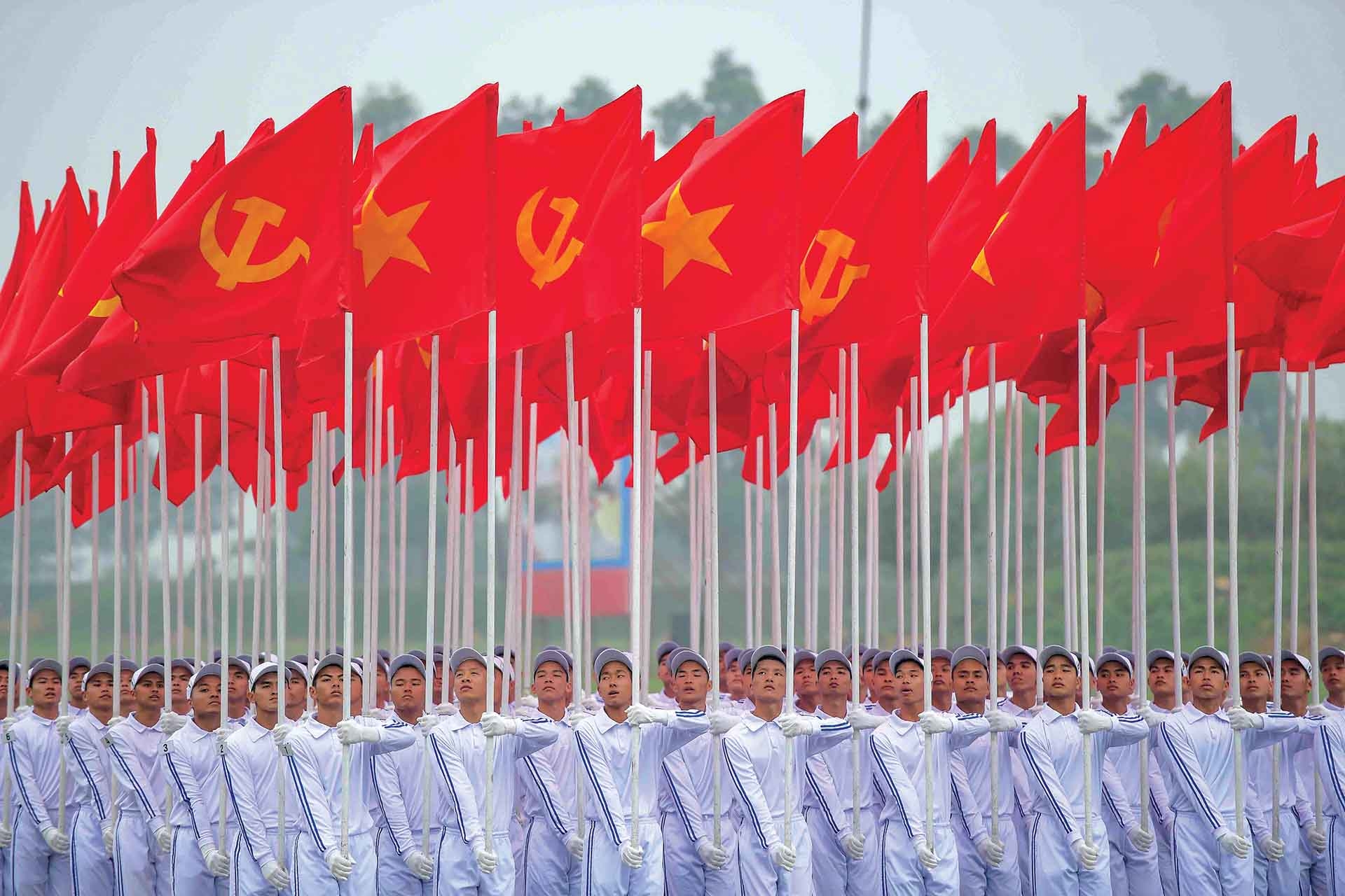 | Khối cờ Đảng, cờ Tổ quốc tham gia hợp luyện diễu binh, diễu hành kỷ niệm 50 năm Ngày giải phóng miền Nam, thống nhất đất nước, tháng 3/2025. (Ảnh: Nguyễn Hồng) |