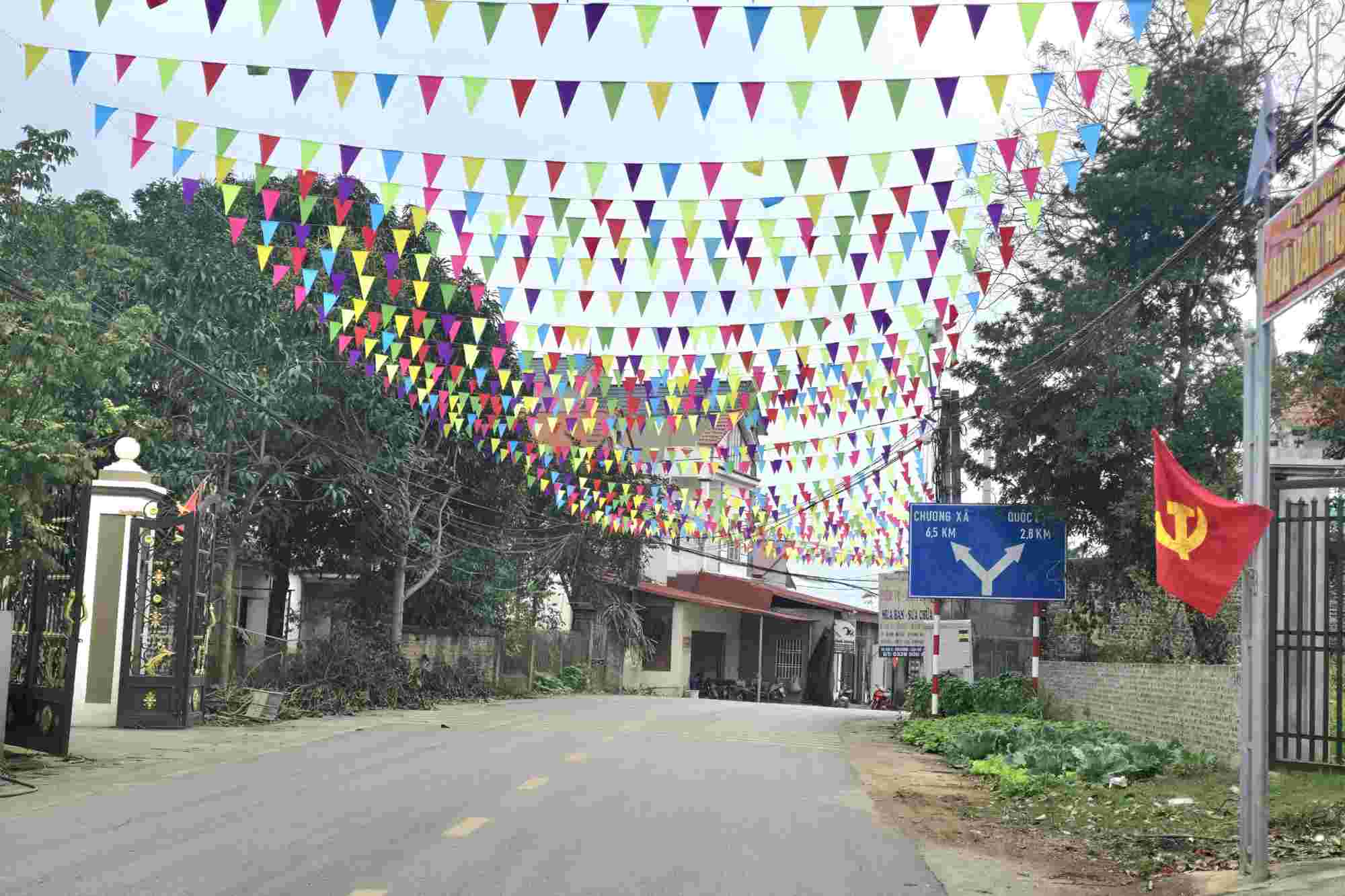 Đặc biệt, khoảng 3km đường tỉnh 313C đang được giăng kín cờ đỏ sao vàng, cờ hoa, đèn lồng... tạo nên một khung cảnh yên bình, rực rỡ sắc màu, phần nào nói lên đời sống vật chất và tinh thần của người dân nơi đây đã ngày càng được nâng cao.
