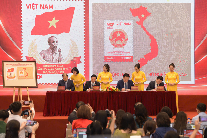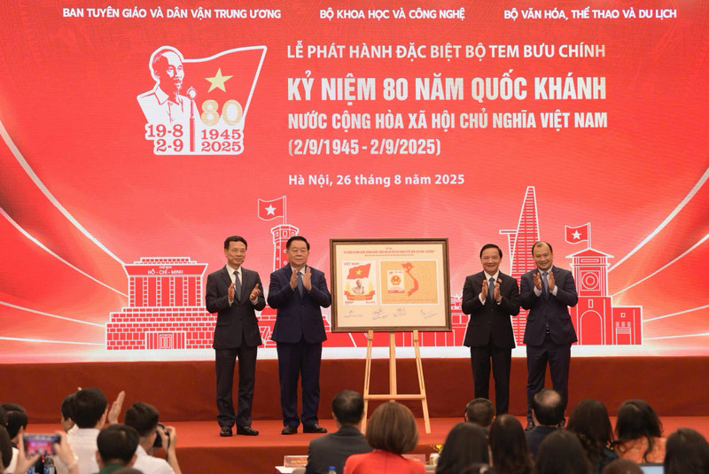 Trong khuôn khổ buổi lễ, Bộ Khoa học và Công nghệ phối hợp với Ban Tuyên giáo và Dân vận Trung ương, Bộ Văn hóa Thể thao và Du lịch tổ chức Lễ phát hành đặc biệt bộ tem bưu chính “Kỷ niệm 80 năm Quốc khánh nước CHXHCN Việt Nam (2/9/1945 - 2/9/2025).