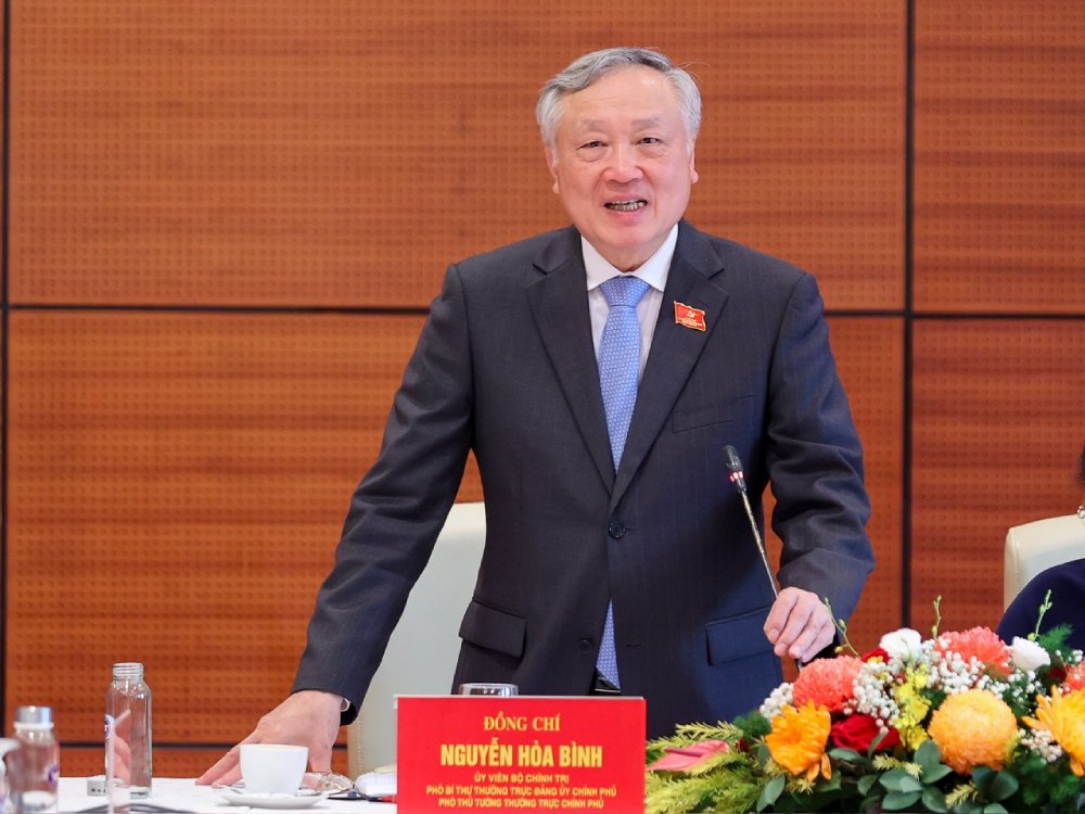 Ủy viên Bộ Chính trị, Phó Bí thư Thường trực Đảng ủy Chính phủ, Phó Thủ tướng Thường trực Chính phủ Nguyễn Hòa Bình. Ảnh: Nhật BắcPhát biểu tại thảo luận tổ, Ủy viên Bộ Chính trị, Phó Bí thư Thường trực Đảng ủy Chính phủ, Phó Thủ tướng Thường trực Chính phủ Nguyễn Hòa Bình nhấn mạnh: Chúng ta vừa trải qua một nhiệm kỳ rất khác biệt, khắc nghiệt. Khó khăn, thách thức nhiều hơn cơ hội và thuận lợi.