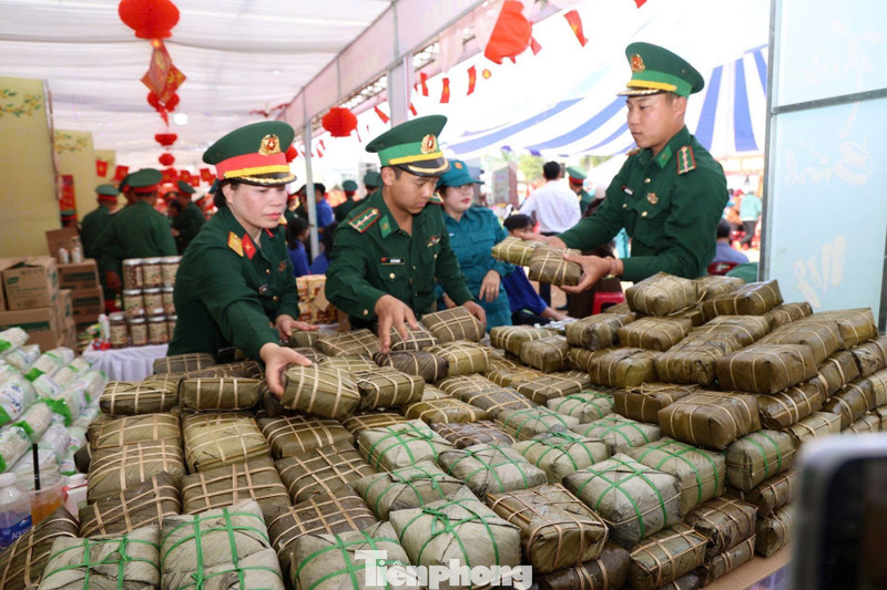 Hàng trăm bánh chưng được chuẩn bị phục vụ người dân.