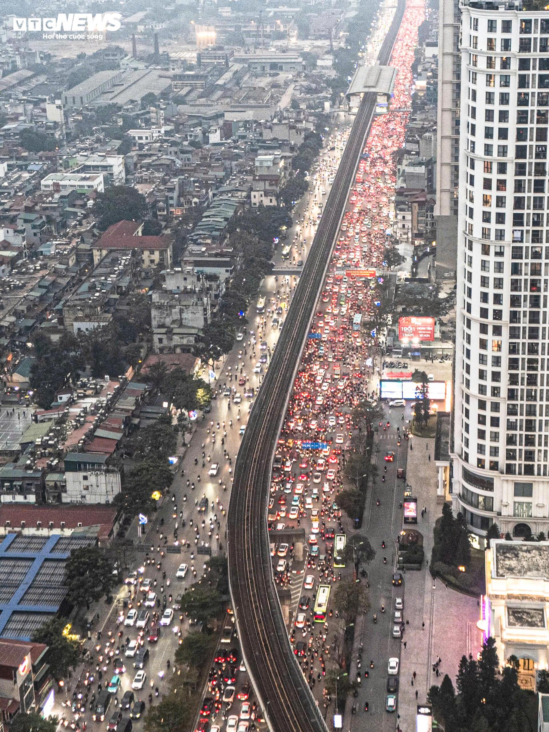 17h30 ngày 4/2, tuyến đường Nguyễn Trãi đoạn qua khu vực ga Thượng Đình vẫn trong tình trạng ùn ứ nghiêm trọng. Các phương tiện nối dài hướng về hầm chui Thanh Xuân, có thời điểm dòng xe kéo dài hơn 1 km.