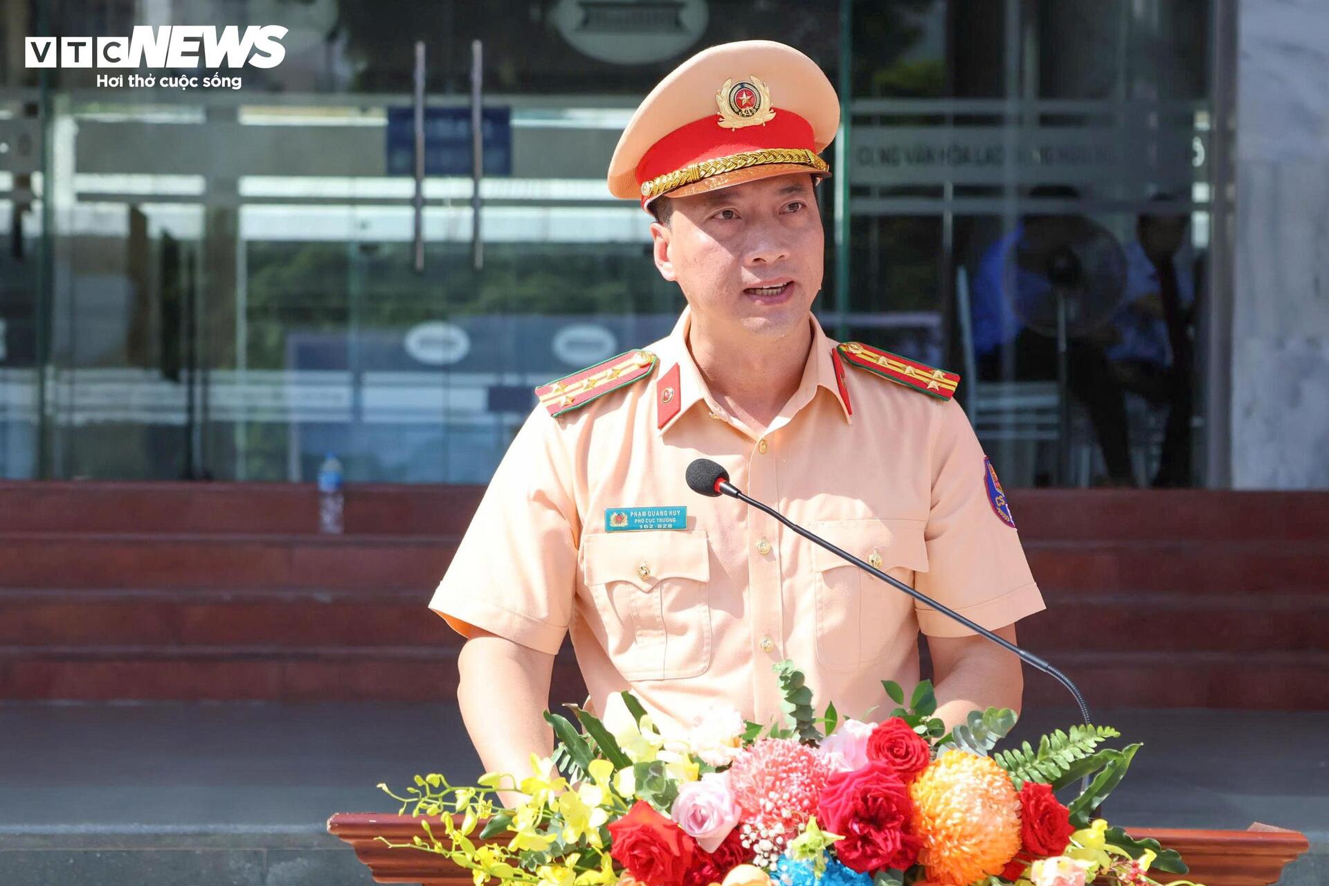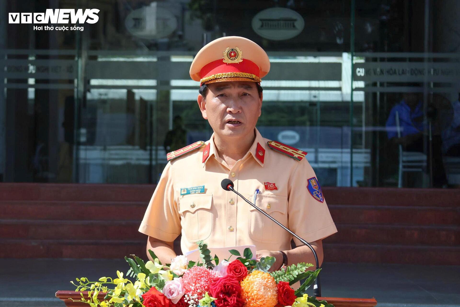 Đại tá Trần Đình Nghĩa (Trưởng phòng CSGT Công an TP Hà Nội), thay mặt đơn vị tiếp nhận lực lượng và phương tiện, đồng thời trân trọng cảm ơn sự quan tâm, hỗ trợ từ Cục CSGT và công an các địa phương. Đại tá Trần Đình Nghĩa khẳng định, Phòng CSGT Hà Nội đã xây dựng kế hoạch cụ thể, phân công nhiệm vụ tới từng tổ, từng cán bộ, chiến sĩ; chủ động phối hợp chặt chẽ với các lực lượng chức năng, bảo đảm quân số và phương tiện luôn ở trạng thái sẵn sàng cao nhất để phục vụ sự kiện A80 thành công, an toàn.
