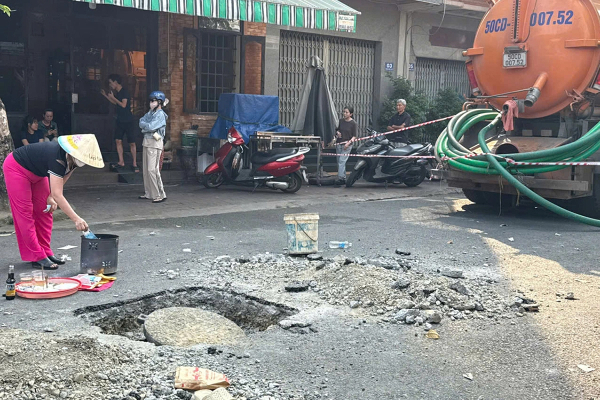 Hố ga xảy ra sự cố nằm ngay cổng chợ Ngọc Hà, cách ngã ba rẽ vào 20-30 m, miệng hố có đường kính rộng khoảng 60 cm, sâu 7 m.