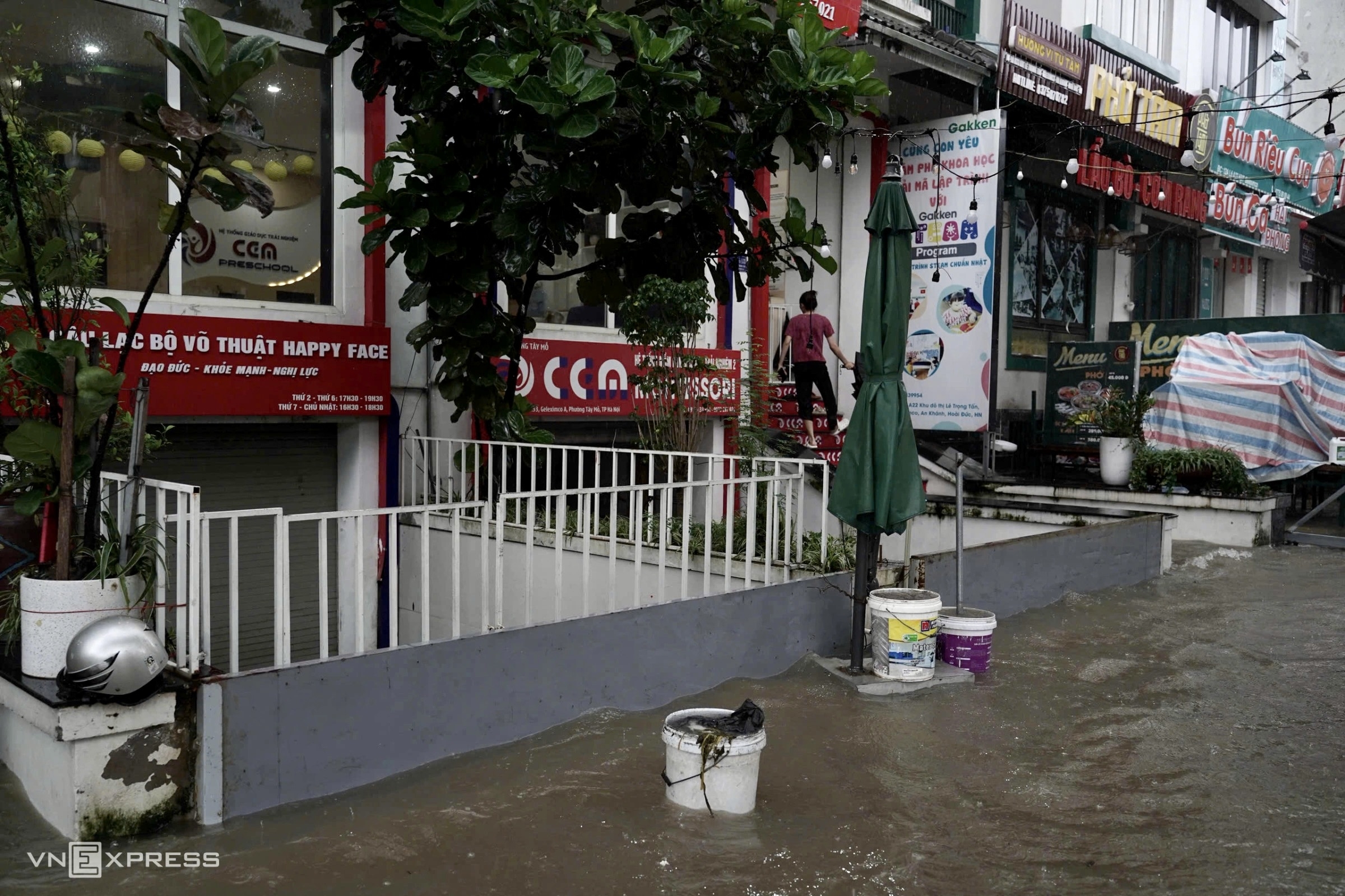 "Chúng tôi chỉ mong trời ngừng mưa, bởi ảnh hưởng tới thực phẩm trữ đông, đồ đạc nếu nước tràn vào tầng hầm", ông Tuấn Trương, chủ chuỗi cửa hàng nói. Họ phải cắt cử hai nhân sự túc trực thường xuyên để ứng phó sự cố, dọn dẹp cửa hàng khi nước rút. Tại cơ sở của chuỗi này ở khu đô thị Vinhomes Smart City, các đơn online vẫn có thể phục vụ, giảm bớt thiệt hại khi nước ngập dâng cao.
