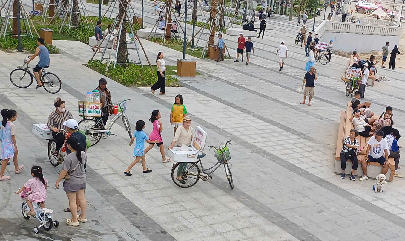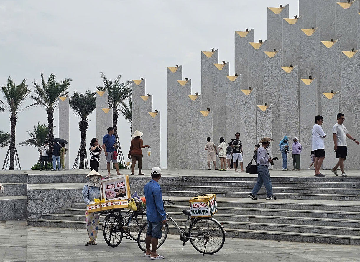 Công viên Thùy Vân dọc biển Bãi Sau, đầu tư gần 1.100 tỷ đồng, chưa có đơn vị vận hành nên hàng rong, rác thải, xe cộ tràn lan, gây nhếch nhác.