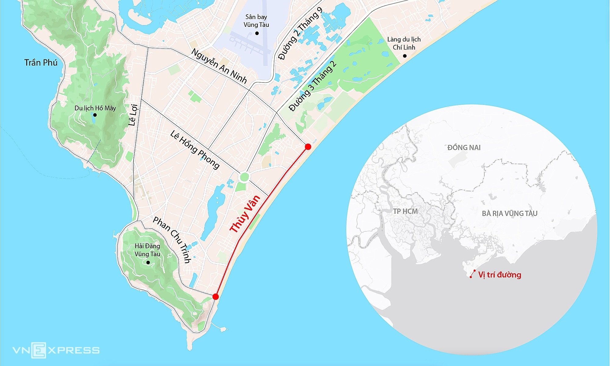 Dự án chỉnh trang trục đường Thùy Vân có tổng vốn gần 1.100 tỷ đồng, khánh thành cuối năm ngoái, gồm công viên cây xanh, đường dạo ven biển, tháp Tam Thắng, khu vui chơi cộng đồng và các trạm dịch vụ công cộng. Công trình được kỳ vọng tạo điểm đến du lịch sôi động cả ngày lẫn đêm cho khu vực Bãi Sau.