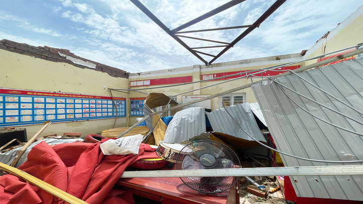 “Ngay sau khi bão tan, chúng tôi cùng chính quyền, đơn vị kết nghĩa và lực lượng chức năng khẩn trương dọn dẹp, vệ sinh trường lớp, chờ nước rút để sớm đón học sinh trở lại”, cô Oanh nói.