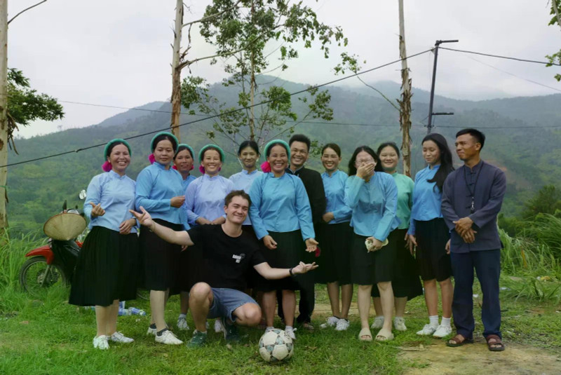 François Bibonne chụp cùng đội bóng nữ của chị em người Sán Chỉ ở Bình Liêu, Quảng Ninh. (Ảnh: Nhân vật cung cấp)Từng nổi tiếng với "Ngày xưa có một nhịp cầu tại Việt Nam" (Once upon a bridge in Vietnam, 2022) - bộ phim tài liệu về sự kết nối giữa nhạc giao hưởng và nhạc dân gian Việt Nam, chàng trai người Pháp François Bibonne đã trở lại với phần phim thứ 2. Lần này là sự kết hợp có phần lạ lùng hơn.