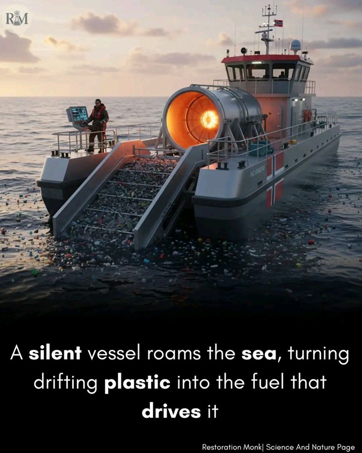 Nội dung bài đăng có đoạn: "Một bước đột phá trong công cuộc làm sạch đại dương! Các kỹ sư hàng hải Na Uy vừa hạ thủy BlueHarvester - tàu tự hành chạy bằng sóng, có khả năng thu thập rác thải nhựa trôi nổi trên đại dương và chuyển chúng thành nhiên liệu sử dụng trực tiếp trên tàu.