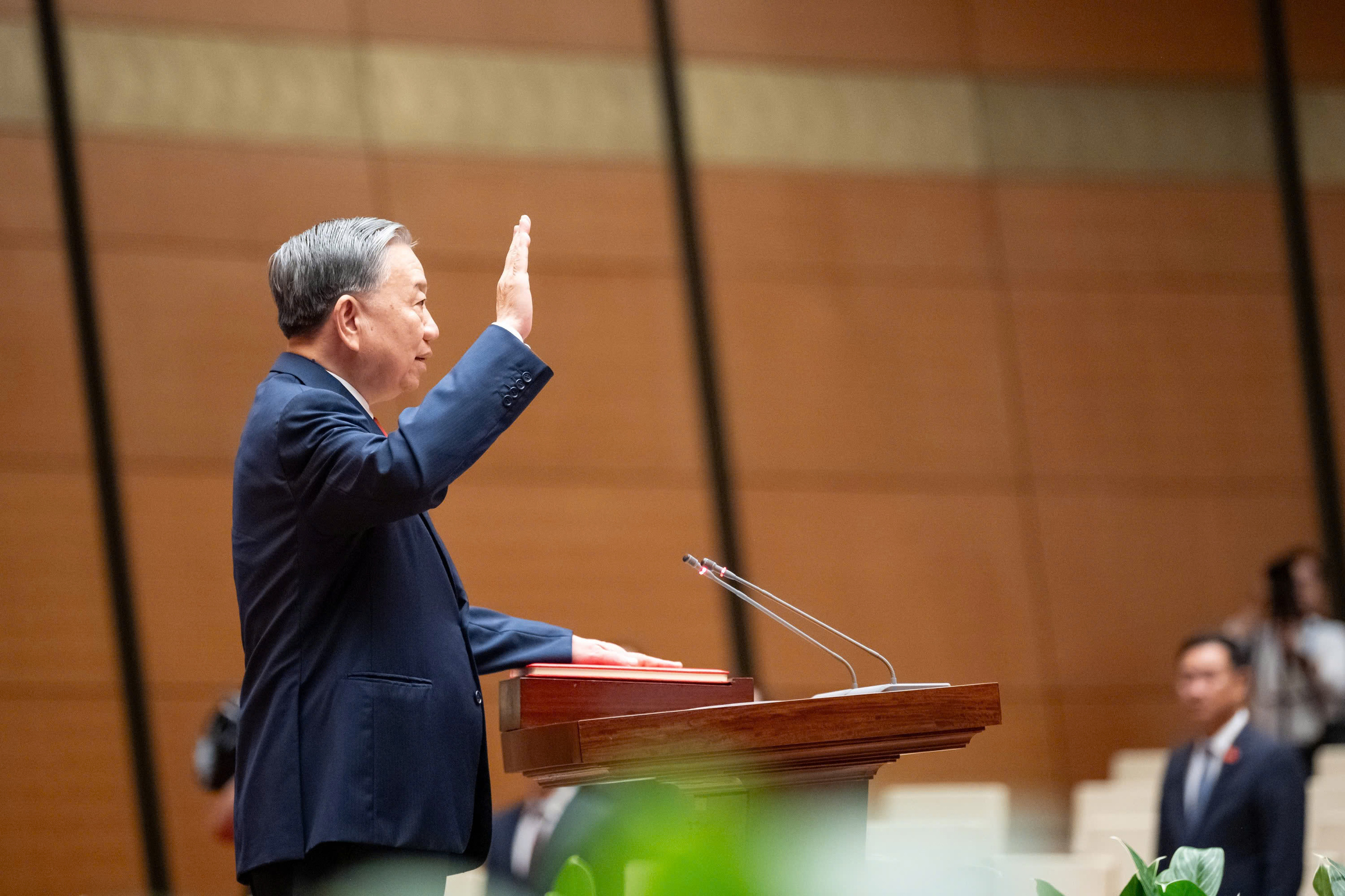 Sáng 7/4, Quốc hội bầu Tổng Bí thư Tô Lâm giữ chức Chủ tịch nước nhiệm kỳ 2026-2031 với 100% đại biểu có mặt tán thành. Đây là lần thứ hai Tổng Bí thư Tô Lâm đảm nhiệm đồng thời hai chức danh Tổng Bí thư và Chủ tịch nước, sau lần đầu năm 2024.