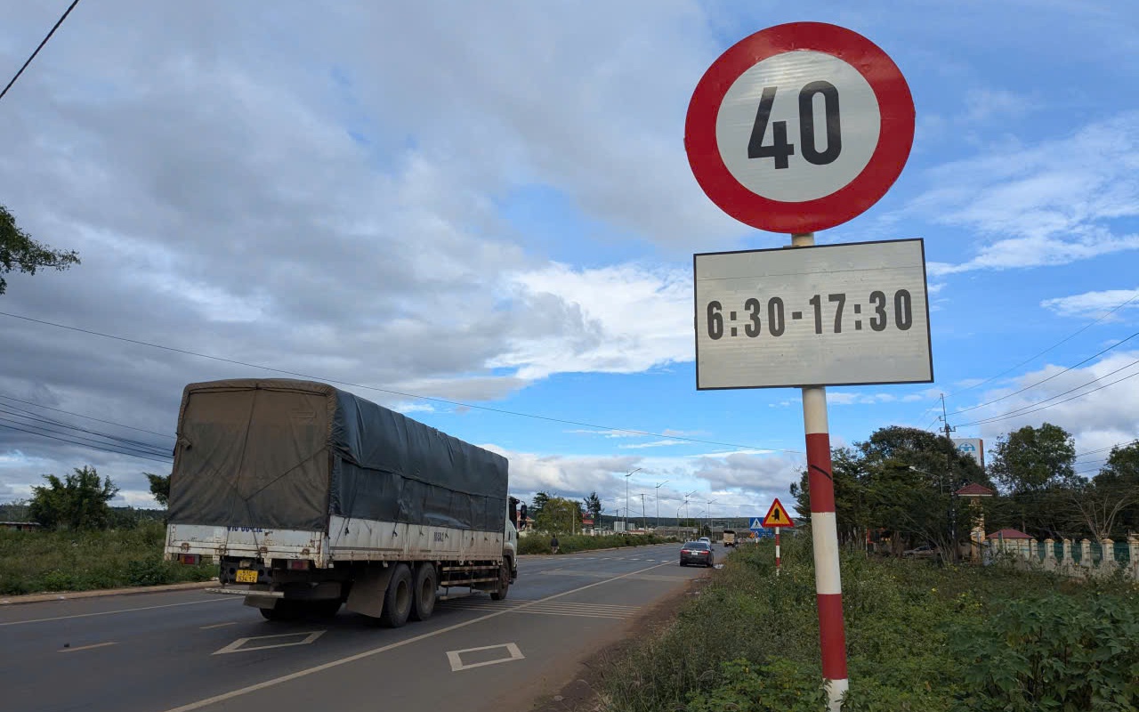 Biển hạn chế tốc độ 40km/h từ khung giờ 6h30 tới 17h30 trên Quốc lộ 19 qua phường An Phú, tỉnh Gia Lai - Ảnh: TẤN LỰCNgày 8-2, Sở Xây dựng tỉnh Gia Lai cho biết Khu Quản lý đường bộ III, Cục Đường bộ Việt Nam vừa có công văn chỉ đạo Văn phòng Quản lý đường bộ III.2, III.3 và Công ty BOT 36.71 phối hợp rà soát, xử lý bất cập về biển báo hạn chế tốc độ trên quốc lộ 19, tỉnh Gia Lai.