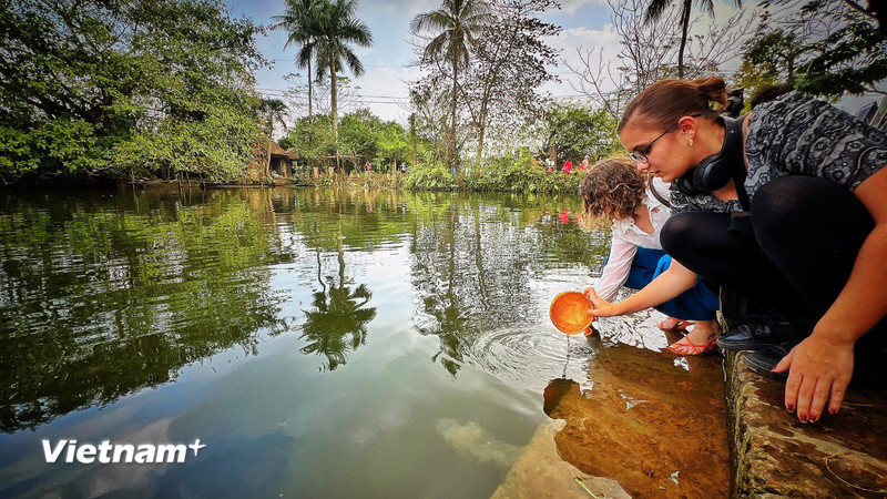 Du khách quốc tế trải nghiệm thả cá chép dịp ông Công, ông Táo ở làng cổ Đường Lâm. (Ảnh: Mai Mai/Vietnam+)Vậy để lan tỏa hơn nữa hình ảnh điểm đến quốc gia, tăng cường hoạt động xúc tiến trong năm tới, lãnh đạo ngành đã xây dựng chiến lược ra sao?