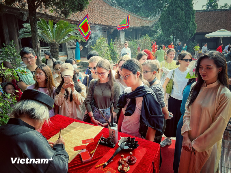 Du khách tìm hiểu phong tục xin chữ đầu Xuân ở Việt Nam. (Ảnh: Mai Mai/Vietnam+)Số liệu do Cục Thống kê vừa công bố cho thấy cả năm 2025, Việt Nam đón gần 21,17 triệu lượt khách quốc tế (tăng 20,4% so với năm 2024), vượt xa con số 18 triệu lượt của năm 2019. Đặc biệt, Việt Nam được Tổ chức Du lịch Liên hợp quốc xếp vào nhóm quốc gia có tốc độ tăng trưởng du lịch quốc tế cao nhất trên thế giới (trong khi đó khu vực châu Á-Thái Bình Dương chỉ đạt mức phục hồi khoảng 90% so với trước dịch).