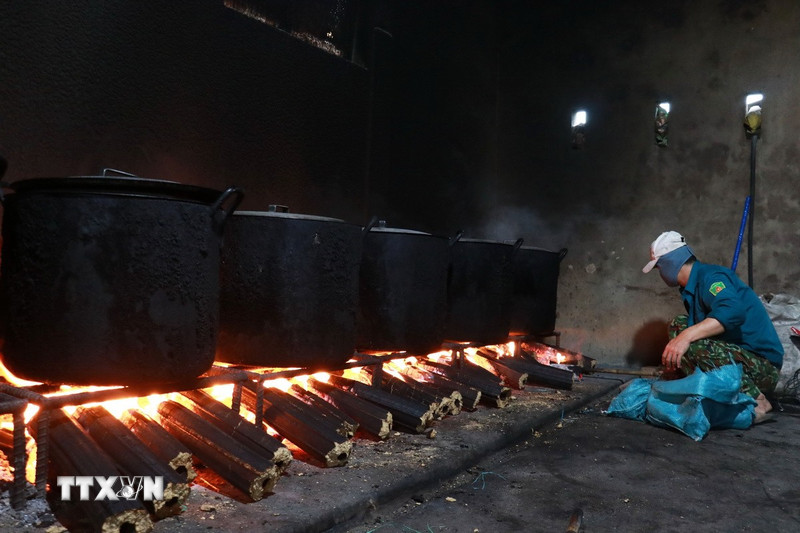 Người người tất bật gói bánh, nhà nhà đỏ lửa suốt ngày đêm để kịp giao hàng phục vụ nhu cầu của người dân trong dịp Tết cổ truyền của dân tộc.