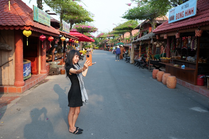 Không gian chợ quê tại làng gốm Tư Buôi (phường Thanh Đức, Vĩnh Long) là điểm check-in thu hút du khách - Ảnh: HỮU HẠNH