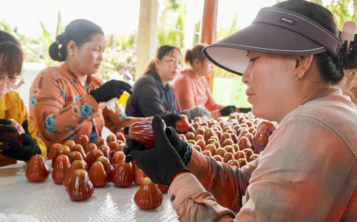 Mận sau thu hoạch được phân loại, vệ sinh và đóng gói tại kho trước khi xuất ra thị trường. Ảnh: Phương AnhÔng Nguyễn Văn Đắc, Phó Chủ tịch UBND xã Cù Lao Dung (TP Cần Thơ), đánh giá mô hình phù hợp với điều kiện thổ nhưỡng địa phương, có nhiều triển vọng mở rộng và tiềm năng kết hợp du lịch nông nghiệp. Mô hình này đã được đưa vào kế hoạch phát triển kinh tế nông nghiệp giai đoạn 2026 - 2030, hướng đến thay thế cây trồng kém hiệu quả, từng bước giảm diện tích mía và nâng cao thu nhập cho nông hộ theo hướng bền vững.