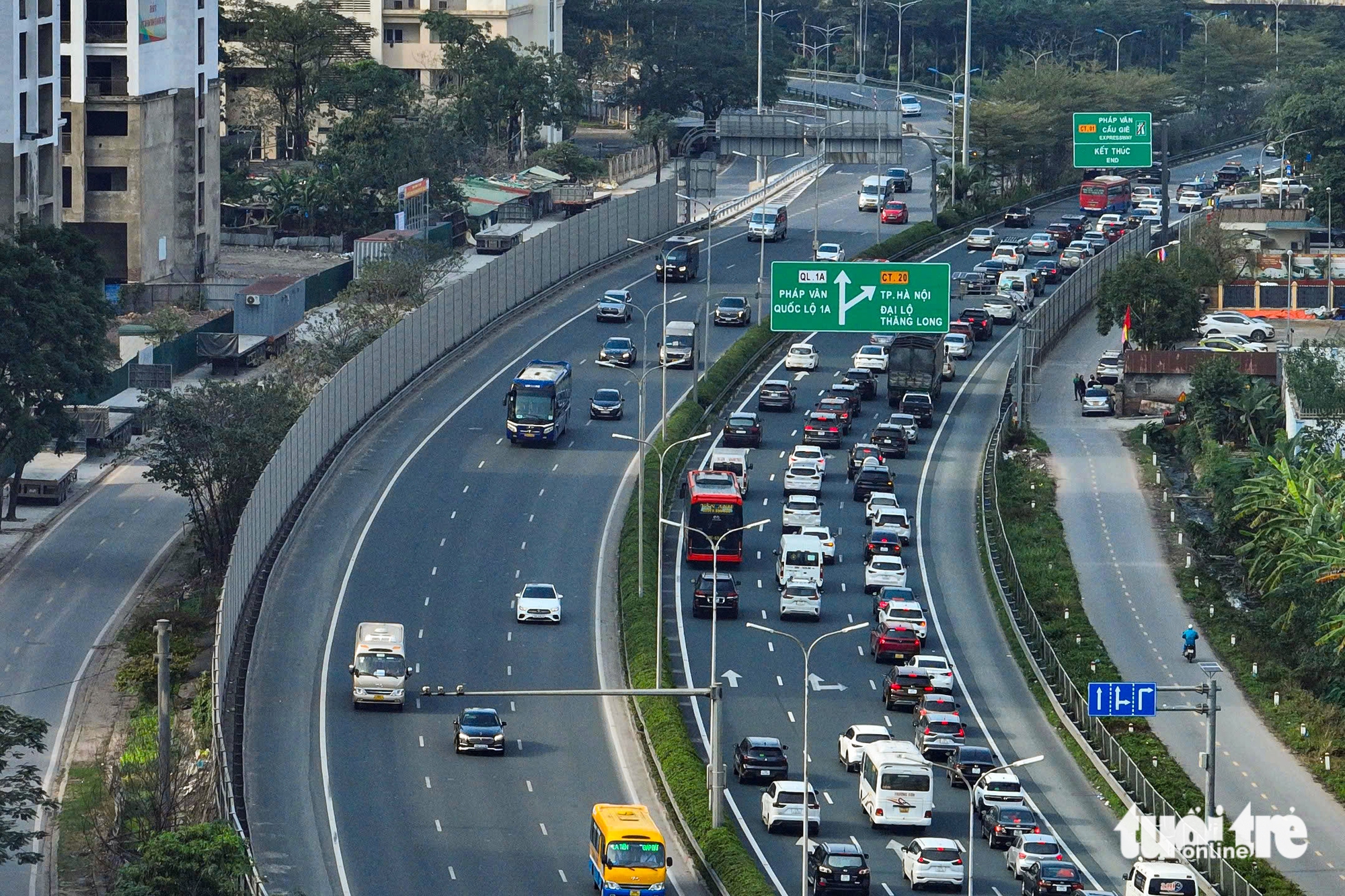 Dòng xe ùn trên cao tốc Pháp Vân - Cầu Giẽ dù chưa hết kỳ nghỉ Tết - Ảnh: HỒNG QUANG