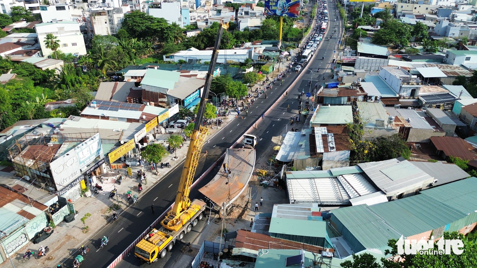 Xe cẩu được điều đến giải tỏa hiện trường - Ảnh: MINH HÒA