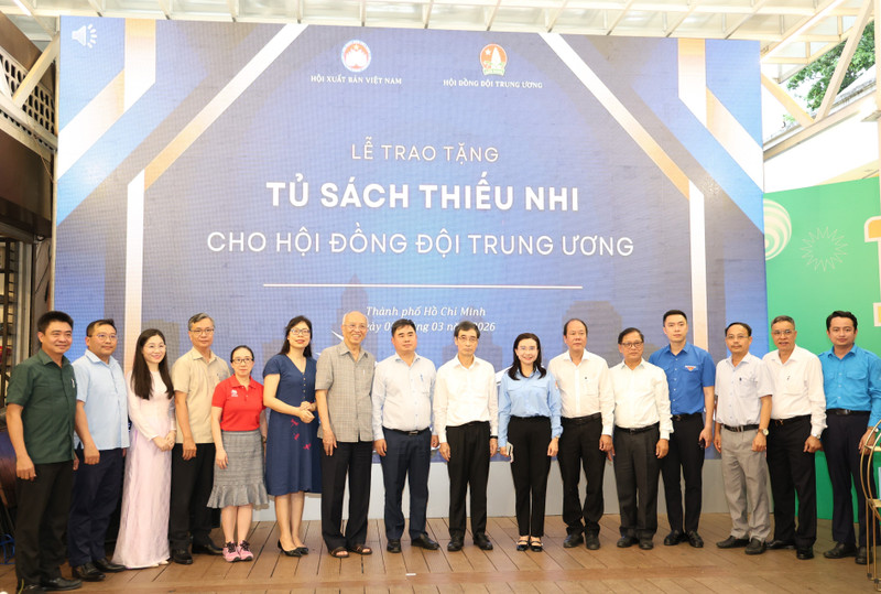 Đại diện Hội đồng Đội Trung ương tiếp nhận tượng trưng tủ sách thiếu nhi từ Hội Xuất bản Việt Nam và các đơn vị đồng hành. Dịp này, các đơn vị đã trao tặng Hội đồng Đội Trung ương khoảng 2.000 cuốn sách.Phát biểu tại buổi lễ, Chủ tịch Hội Xuất bản Việt Nam Phạm Minh Tuấn cho biết, buổi lễ này có ý nghĩa đặc biệt khi Hội Xuất bản Việt Nam cùng các đơn vị đồng hành trao tặng Tủ sách thiếu nhi cho Hội đồng Đội Trung ương để tiếp tục lan tỏa đến các trường học, các cơ sở Đoàn – Đội và các điểm sinh hoạt thiếu nhi trên cả nước.