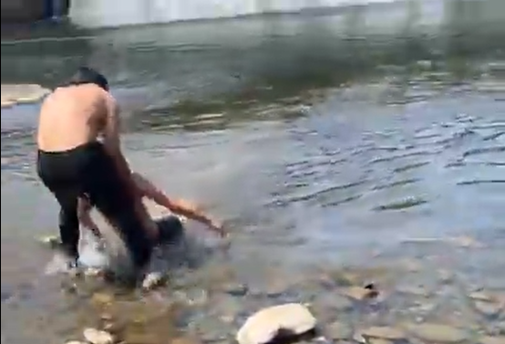 Khoảnh khắc anh Hà lao xuống nước đưa em L. vào bờ - Ảnh: Cắt từ clipNgày 18-3, ông Trần Quốc Bảo - Chủ tịch UBND xã Hương Khê (Hà Tĩnh), cho biết trên địa bàn vừa có một nam sinh đuối nước, may mắn người dân phát hiện kịp thời cứu giúp và đưa em lên bờ an toàn.
