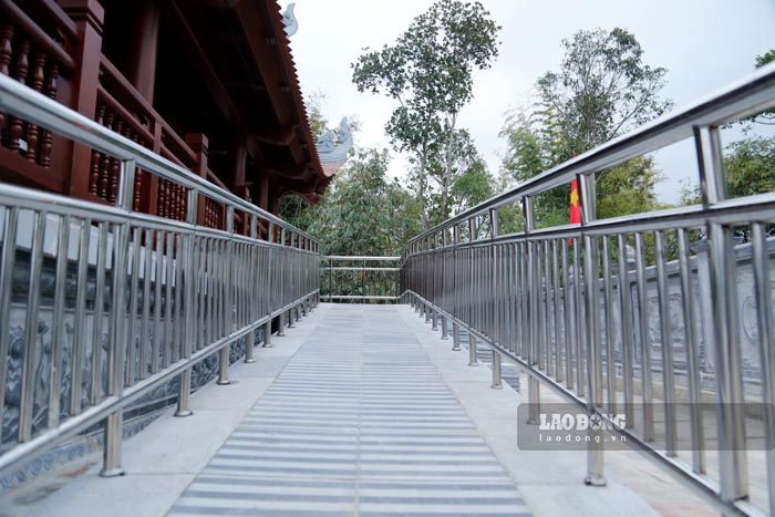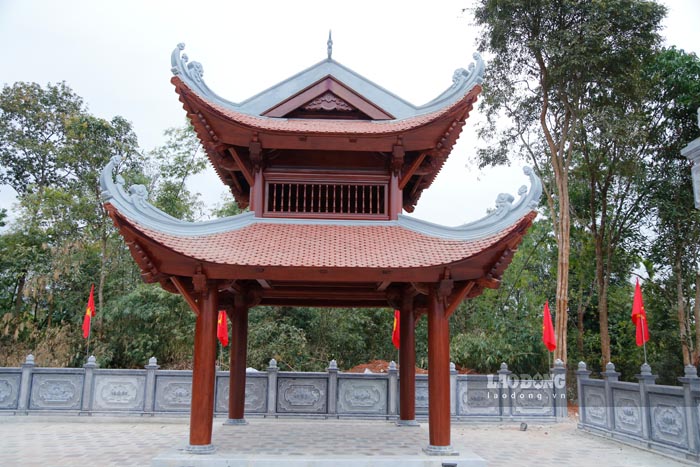 Lầu Tả và lầu Hữu được bố trí ở 2 bên Nhà tưởng niệm. Ảnh: Quang ĐạtGhi nhận thực tế của PV cho thấy, công trình có diện tích 160m2 được thiết kế theo kiến trúc truyền thống, hình chữ “nhất”, bao gồm 5 gian (gian giữa rộng 3,6m, các gian bên rộng 3m và 1,8m) với 2 tầng mái lợp ngói mũi hài.